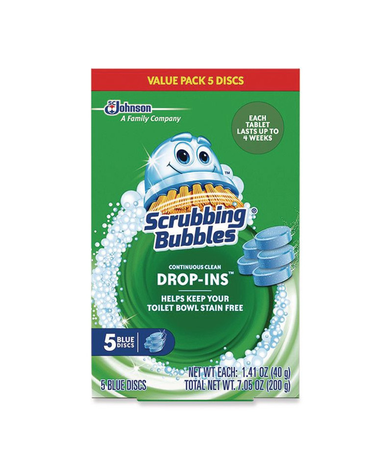 Scrubby has just the remedy for yucky toilet stains. Scrubbing Bubbles® Drop-Ins toilet cleaning tablets. Just drop a tablet into your tank to help keep your toilet bowl stain-free up to four weeks. With every flush, your toilet enjoys glorious relief from stains caused by hard water, minerals, and limescale. That's continuous stain protection for a continuous clean. Quick and hassle-free.