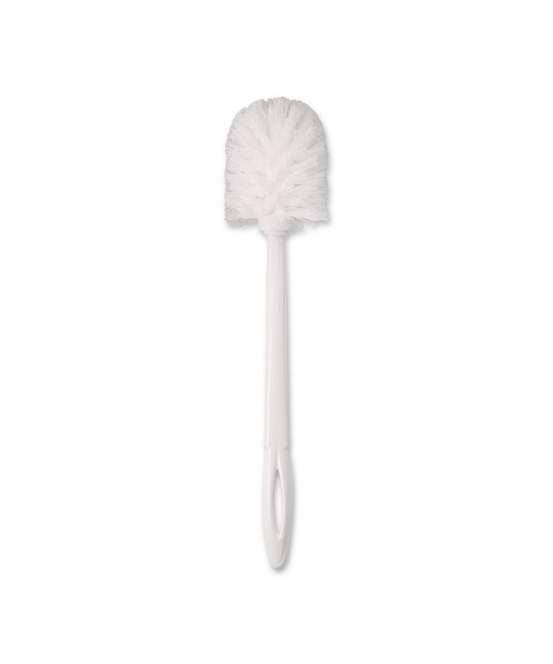The Rubbermaid Commercial Products Toilet Brush with Plastic Handle is ideal for commercial, medical, and industrial applications. The sturdy plastic toilet bowl brush handle is suited for moderate to heavy cleaning. A hole near the end of the toilet brush handle allows the toilet cleaning brush to be hung for storage. The white polypropylene bristles are resistant to stains, odors, bacteria, fungi, and wear.