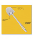 The Rubbermaid Commercial Products Toilet Brush with Plastic Handle is ideal for commercial, medical, and industrial applications. The sturdy plastic toilet bowl brush handle is suited for moderate to heavy cleaning. A hole near the end of the toilet brush handle allows the toilet cleaning brush to be hung for storage. The white polypropylene bristles are resistant to stains, odors, bacteria, fungi, and wear.
