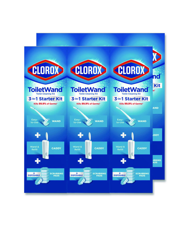 Clorox® ToiletWand® is an easy to use, all in one system that makes the dreaded toilet cleaning experience a breeze. The all-in-one system contains one wand with a long handle to help you clean from a distance, six disposable scrubbing pads preloaded with cleaner and one caddy to conveniently store scrubbing pad refills. Each disposable scrubbing pad is preloaded with Clorox® Cleaner that kills 99.9% of germs. Scrubbing pads power through hard water and lime stains 2x faster than when using a toilet brush with manual toilet bowl cleaner. Never touch an icky toilet brush again: disposable scrubbing pads conveniently pop off into the trash so you can toss the mess every time.