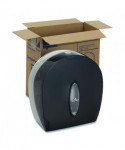 This durable, high-capacity 9" jumbo bath tissue dispenser is designed to hold rolls up to 9". The key-lock design protects against waste as well as pilferage while making refilling rolls quick and easy. Durable, high-capacity bathroom tissue dispenser offers cost-saving performance. Attractive cover complements any décor.
