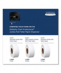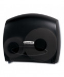 Jumbo bathroom tissue dispenser has a curved design, creating a graceful, contemporary look. Designed for easy access to toilet tissue. Dispenser has a replaceable lock with a push button option, for security and ease of use.