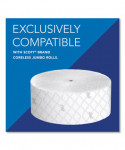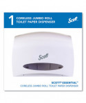 High-capacity bath tissue system perfect for your busy workplace. Keyless, one-handed reloading for easy maintenance; no moving parts. Durable plastic. Holds SCOTT® Coreless JRT Jr. rolls (sold separately).