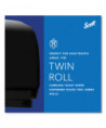 Holds two 9 3/8" x 3 4/5" jumbo rolls -- more than the equivalent length of 12 standard rolls. Sliding door prevents using one roll until other is depleted. Features built-in Microban antimicrobial product protection.