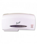 Holds two 9 3/8" x 3 4/5" jumbo rolls -- more than the equivalent length of 12 standard rolls. Sliding door prevents using one roll until other is depleted. Features built-in Microban antimicrobial product protection.