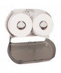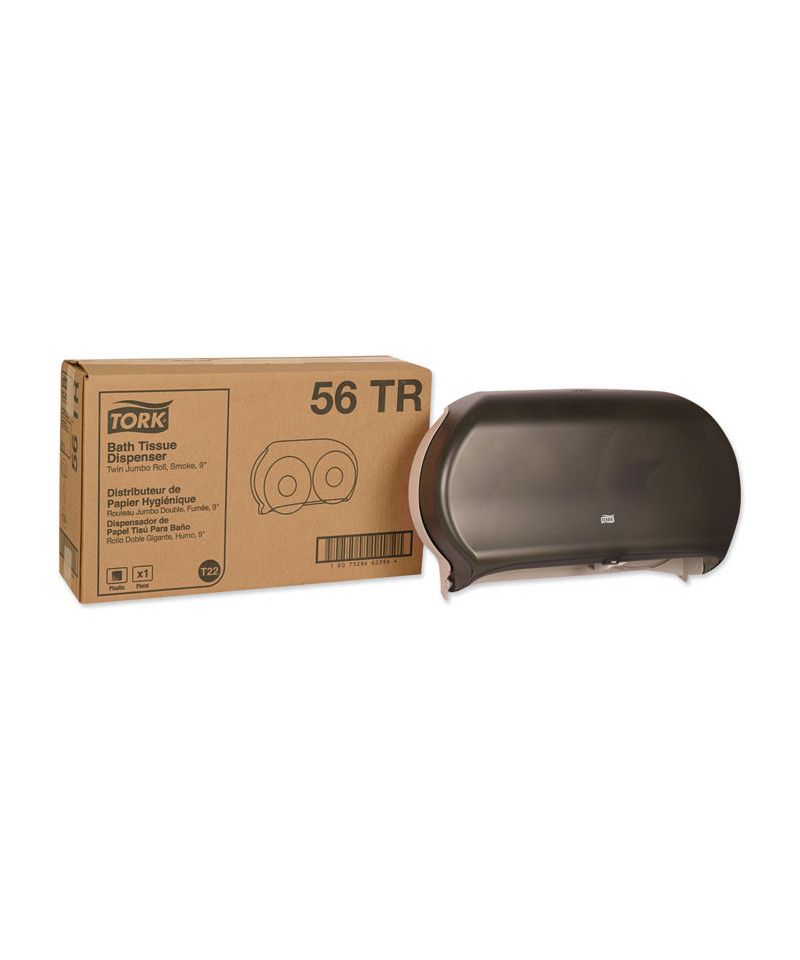 The Tork Twin Jumbo Bath Tissue Roll Dispenser's large double 9" roll capacity is the ideal solution for any high traffic environment. This dispenser solution helps to reduce maintenance costs by decreasing the frequency that the dispenser needs to be refilled and fewer service interruptions to be experienced by your patrons.