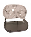 Sturdy toilet tissue dispenser houses universal jumbo rolls. Auto transfer and double coverage eliminates run-outs, providing access to replacement...