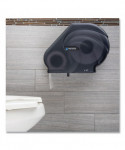 Toilet tissue dispenser eliminates stub roll waste and ensures the continual availability of paper through the Infinity® System, which protects the primary roll until the stub roll is used up. Conveniently universal, dispensing any quality or brand of toilet tissue. Attractive, flowing wave design built into the plastic makes it aesthetically pleasing. Dispenser is tough, with break-resistant plastic construction. A replaceable finger lock helps keep it secure.