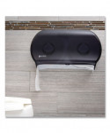 The industryleading Twin 9" JBT Dispenser is one of San Jamar's most versatile jumbo bath tissue dispensers. This dispenser offers the highest capacity of any tissue dispenser. Its slim and compact size makes it a perfect fit in any washroom. The Infinity System® provides continuous availability of tissue and prevents access to the spare roll until it is completely empty, eliminating stub roll waste.