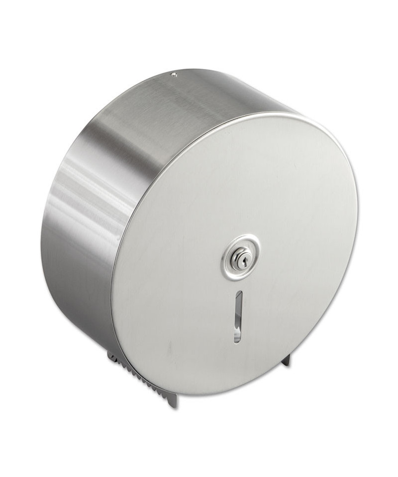 Select a sleek, stainless steel toilet tissue dispenser for your restroom. Lock prevents theft and makes refilling easy. A smooth satin finish adds an impressive shine to any restroom. Easy-view slot allows you to see how much toilet paper remains on the roll, making it easy to decide when a refill is needed. Dispenser designed for jumbo toilet tissue rolls, reducing the need for refills.