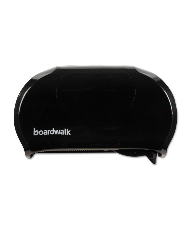 Twin tissue dispenser works to reduce run-outs and prevent waste. Compact double roll standard tissue dispenser takes up a minimum of space; perfect for small restrooms. Two-roll capacity with auto-transfer prevents paper run-outs, with second roll automatically sliding into place after initial roll is depleted. 1.5" mandrel. Tough, easy to clean industrial plastic.