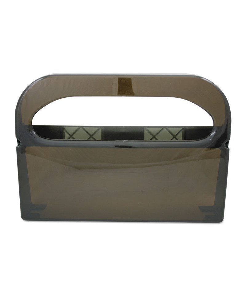 Sturdy styrene plastic ensures that toilet seat cover dispenser will provide long-lasting service. Wall-mountable dispenser is easy to place wherever it is needed. Self adhesive tape speeds up the mounting process. Reduces restroom mess by preventing the need to use towels or toilet paper as a makeshift toilet seat cover replacement. Holds two sleeves of 250 half-fold toilet seat covers. Give patrons the gift of restroom cleanliness with easy access to toilet seat covers.