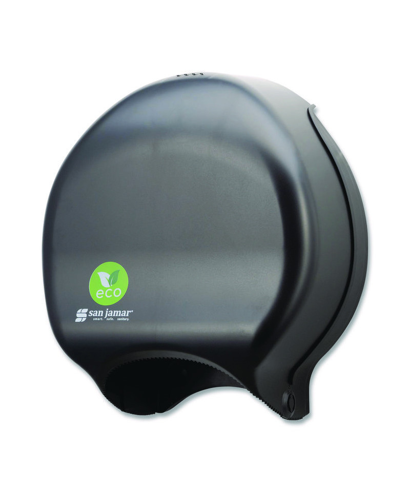 Made from recyclable and sustainable materials. Single JBT dispenser provides efficient and reliable tissue dispensing. Made of sustainable ABS resin with a bright green "eco" logo. The dispensers are shipped in 100% recycled boxes with instructions on recycled paper. They're sealed in biodegradable bags made from up to 20% plant-based polymer.