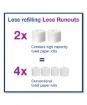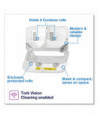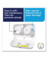 Ideal for medium to high-traffic washrooms with high focus on guest satisfaction, this high efficiency dispenser ensures that toilet paper will always be available for guests by holding up to five times more paper than two conventional bath tissue rolls. Additionally it has coreless rolls producing less trash to remove and Smart, stub-roll holder ensures full roll consumption to minimize waste. Its compact horizontal dispenser saves space.