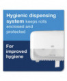 The Tork® Elevation® Coreless High Capacity Bath Tissue Dispenser is ideal for medium to high-traffic washrooms with high focus on guest satisfaction. Efficient dispenser ensures that toilet paper will always be available for guests by holding up to five times more paper than two conventional bath tissue rolls. Coreless rolls produce less trash to remove; Smart, stub-roll holder ensures full roll consumption to minimize waste. Compact horizontal dispenser saves space.