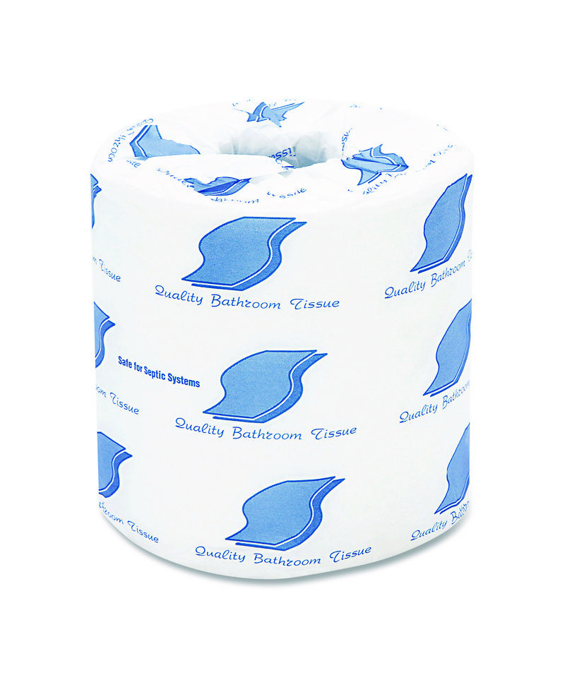 This absorbent, two-ply paper toilet tissue is a great choice for everyday use. It's a reliable and economical choice for busy facilities. The individually wrapped rolls guarantee maximum convenience and hygiene, making it ideal for multiple settings. Ideal for universal bathroom tissue dispensers. Made from recycled fiber, this bathroom tissue reflects a commitment to sustainability.