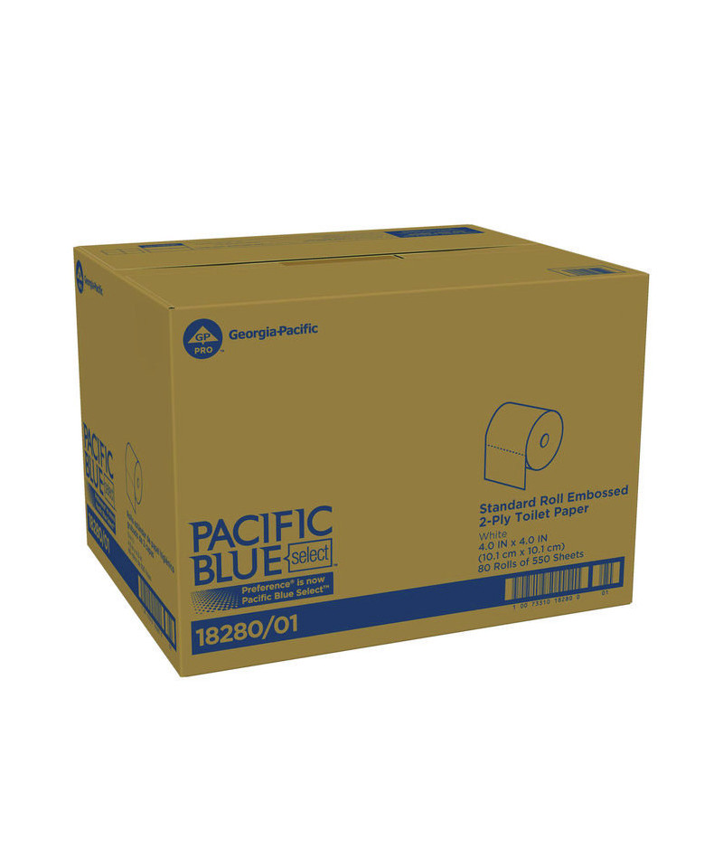 This fashionable, value-oriented 2-Ply bathroom tissue with elegant iris emboss is certain to please your most discriminating patrons. Features a coordinated wrapper and facial box (sold separately) to create an attractive ensemble. Full size 550-sheet rolls make this a popular choice. Tissue delivers softness, quick absorbency, durability and thickness. Safe for all standard sewer and septic systems.
