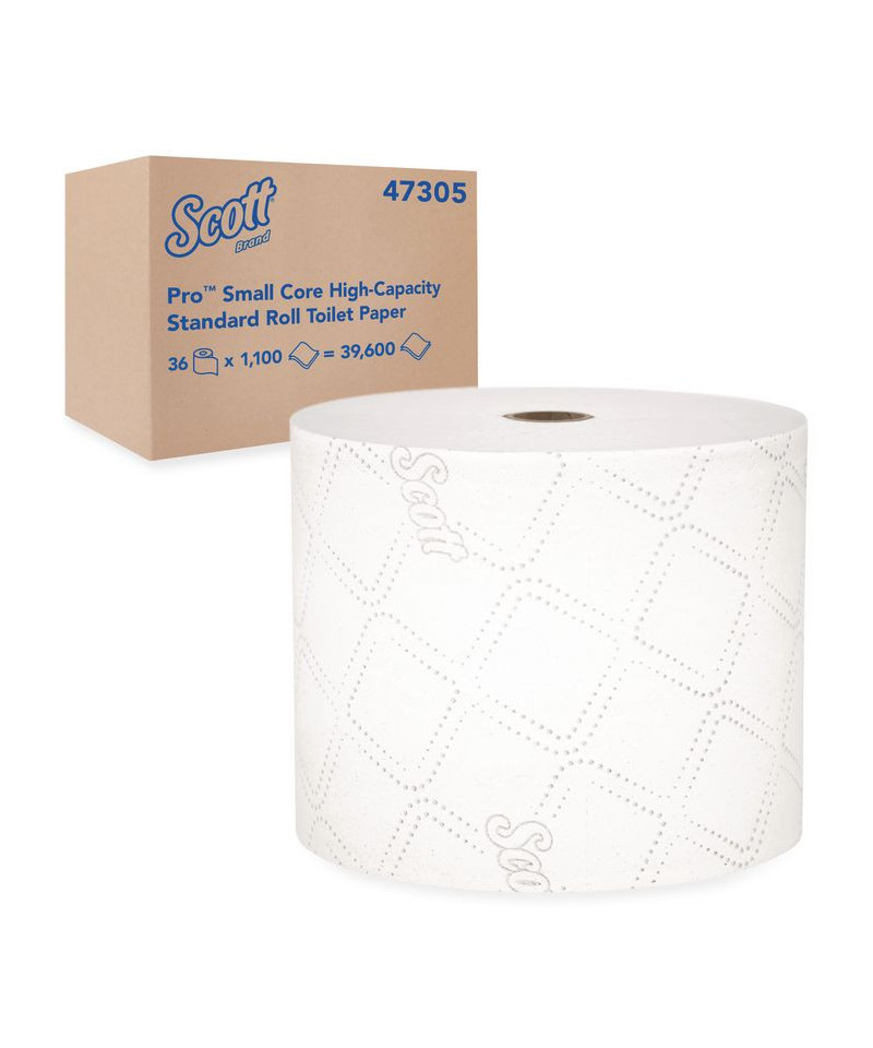 Scott® Pro provides state of the art solutions to maximize productivity with Scott® Pro Paper Core High Capacity Bath Tissue. Now with a nearly-invisible paper core for better roll utilization, this two-ply bathroom tissue offers 10% more sheets/case than the industry standard for high-capacity standard roll bathroom tissue and twice the length of a standard roll bathroom tissue. Waste less without disposing of a corrugate core, with a paper core dispersible in water.