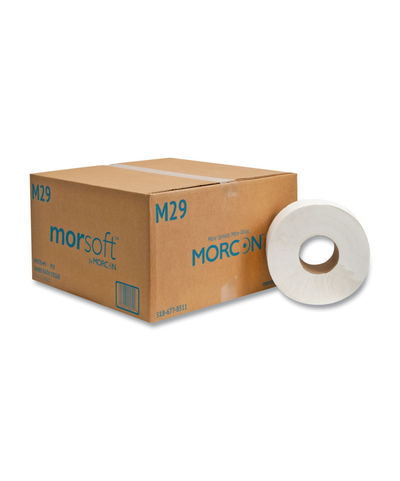 Morcon's Jumbo Roll Tissue is the perfect option for any business looking for quality paper at an affordable cost. Keep restrooms fully stocked with smooth and absorbent value-priced tissue, ideal for high-traffic venues. Since JRTs last longer than your average size roll, this reduces run-outs and changeovers, helping you save on maintenance costs. Made entirely from recycled material meeting EPA guidelines for post-consumer content. Fits most universal JRT jumbo-roll tissue dispensers.