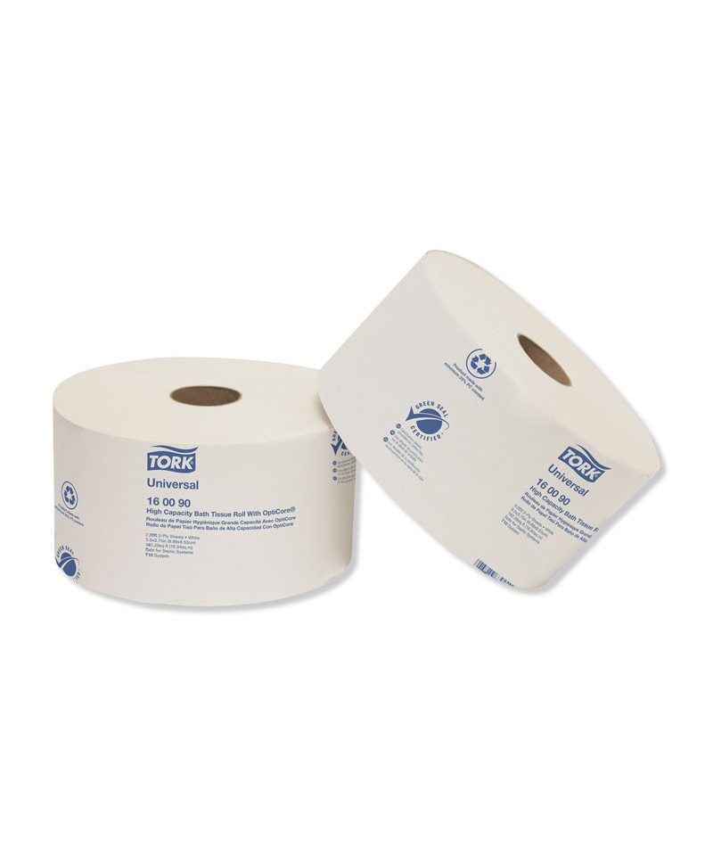 Tork® Universal High-Capacity Bath Tissue Roll with OptiCore® surpasses the look and feel of typical high-capacity tissues so you don't have to trade capacity for quality. The patented two-part core technology offers a unique combination of capacity, waste reduction, and tissue performance. This high-capacity tissue is perfect for high traffic washrooms. OptiCore® technology reduces waste and cost by ensuring maximum use of each roll. High capacity boxes reduce risk of product runouts and improves customer satisfaction. Ply bonding ensures the tissue won't separate during use while sheet perforation allows for proper dispensing without tabbing and waste.