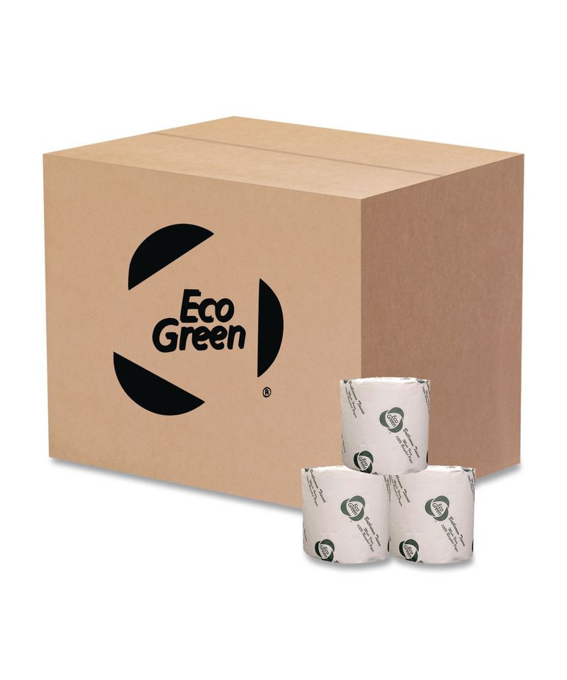 Offer hygienic washroom use for guests with these bath tissue rolls. Provides adequate supply for quick reloading on dispensers. Made from 100% recovered paper fiber that's free of ink, dye, fragrance and chlorine for safe, gentle cleanups. Fits standard roll holders/dispensers.