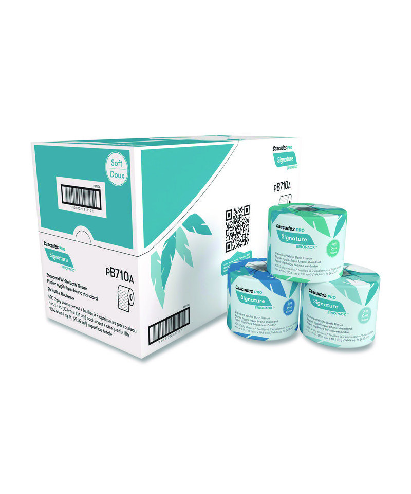 The daily routine at work can sometimes seem disconnected from the familiar comfort of home. However, even in the simplest spaces, a little touch of well-being can make a big difference. Cascades PRO Signature Briopack™ Standard Toilet Paper offers customers a superior quality product that's resistant, and offers the softness and comfort of an at-home experience. This compact product is an ideal solution for e-commerce and small and medium businesses (SMB). Safe for standard septic tanks.