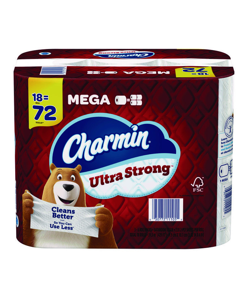 Get sparkly clean with Charmin Ultra Strong. It's four times stronger when wet and has a diamond weave texture. It's woven like a washcloth and it holds up when you wipe. It even cleans better so you can use less and go longer without changing the roll. Larger rolls mean more bang for your behind so you'll be running back to the store less and less (based on number of sheets in Charmin Regular Roll bath tissue). Our Charmin Ultra Strong toilet paper is also two-ply and is designed to be clog-safe and septic-safe so you can flush confidentially and keep clean. We all go, why not Enjoy the Go with America's favorite toilet paper.