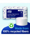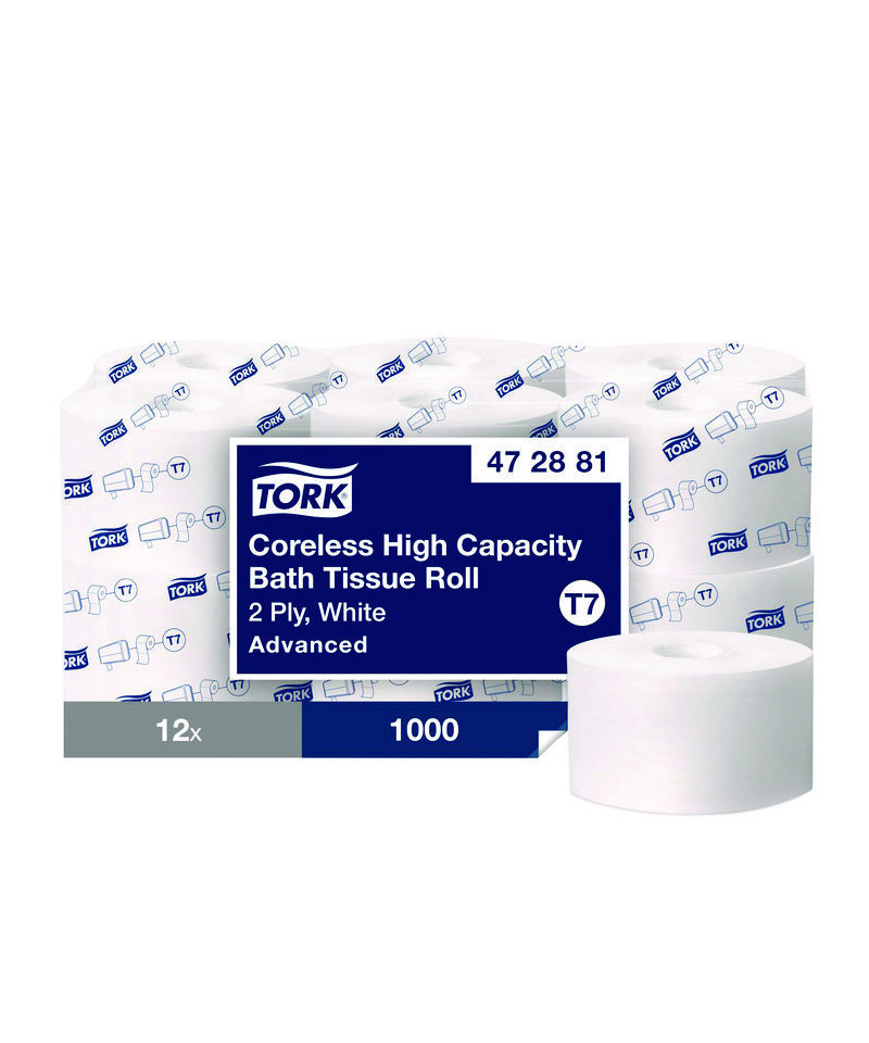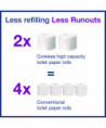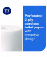 Tork® Coreless is a high-capacity coreless toilet paper system for facilities where efficiency, sustainability, and providing a great experience are key. High capacity, reduced storage space, and certified easy-to-use dispensers make it a better alternative to conventional bath tissue and jumbo rolls. These 2-ply tubeless toilet paper rolls fit a wide range of compatible coreless toilet paper dispensers to meet different restroom needs, so the same compact toilet paper refills can be used across the facility. Compared to conventional bath tissue, Tork® coreless rolls hold two times more paper, with no core and no wrap for less waste.