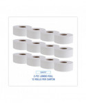 Soft, white toilet tissue is a perfect choice for high-traffic restrooms where there isn't always an attendant on-duty to replace the roll. Economical value size. The jumbo size tissue rolls ensure more feet per roll, resulting in fewer roll changes. Laminated for excellent strength and ply bonding. Safe for septic and sewer systems. The rolls are compatible with dispensers, which are sold separately.