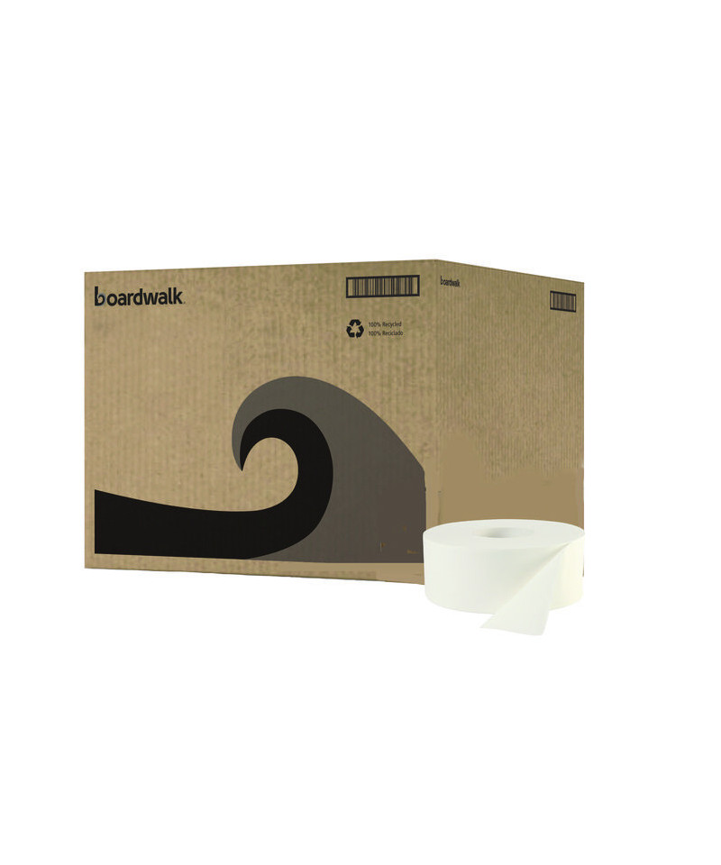 Boardwalk® JRT Jumbo Roll Bathroom Tissue is the economical and reliable choice for high-traffic restrooms. Save time and money by replacing the roll less often with wide roll diameter tissue. Reduce your chances of running out with a long-lasting roll you can rely on. Industrial size roll is ideal for public restrooms where there is not an attendant on-duty. Embossed for added comfort and absorbency.