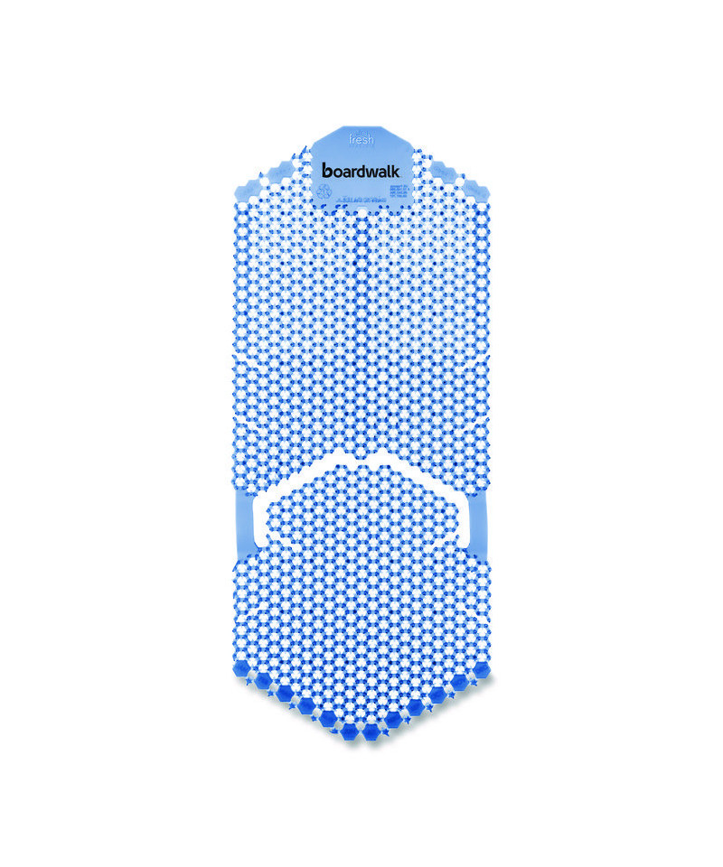 The vertical 60-day urinal screen contains three times more fragrance than competitors. The patented two-sided design eliminates 99% of urine splash on both sides for error-free installation. The Vertical screen doesn't require mounting, simply place the base over the drain and lean the body up the back of the urinal and you're done. No suction cups to engage so it's faster and there's less waste. Each screen has date tabs for replacement reminders and contains beneficial bacteria that consume odors and keep drains clean, clear and smelling fresh.