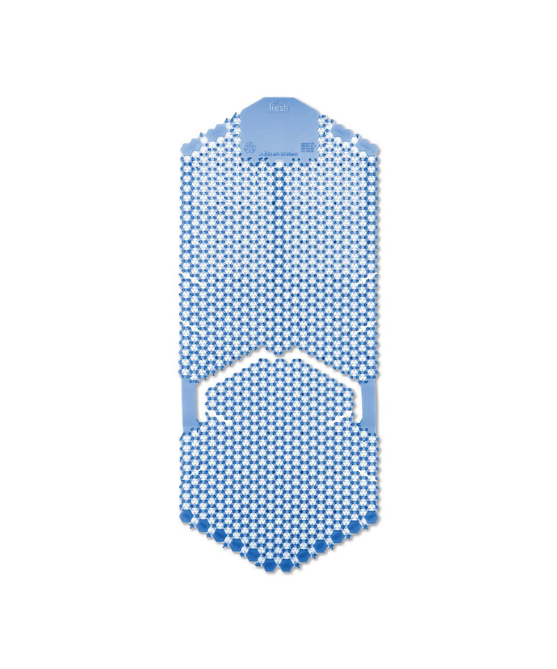 The Tsunami 60-day urinal screen contains 3 times more fragrance than competitors. The patented two-sided design eliminates 99% of urine splash on both sides for error-free installation. Tsunami doesn't require mounting, simply place the base over the drain and lean the body up the back of the urinal and you're done. No suctions cups to engage so it faster and there's less waste. Each screen has date tabs for replacement reminders and contain beneficial bacteria that consume odors and keep drains clean, clear, and smelling fresh.