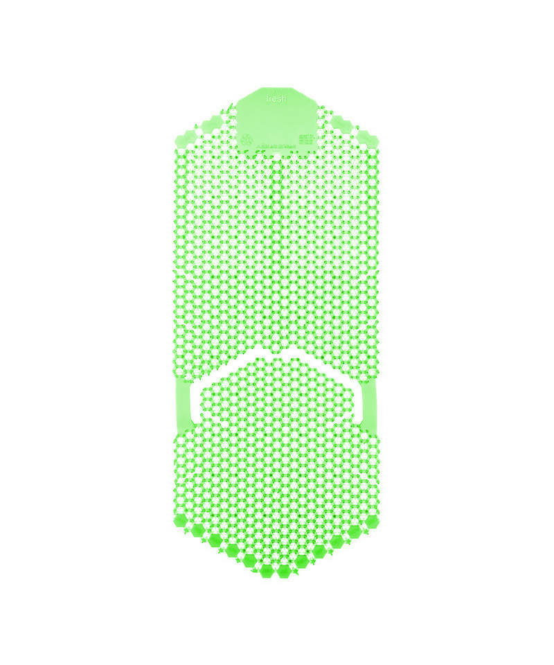 The Tsunami 60-day urinal screen contains 3 times more fragrance than competitors. The patented two-sided design eliminates 99% of urine splash on both sides for error-free installation. Tsunami doesn't require mounting, simply place the base over the drain and lean the body up the back of the urinal and you're done. No suctions cups to engage so it faster and there's less waste. Each screen has date tabs for replacement reminders and contain beneficial bacteria that consume odors and keep drains clean, clear, and smelling fresh.