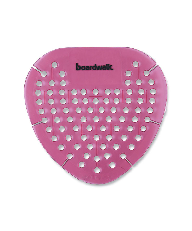 Boardwalk Gem Urinal Deodorizer Screens freshen the urinal with 10 times more fragrance that's gradually released over 30 days. Composed of natural oils to ensure quality fragrances that are more appealing than traditional scented screens, yet mask unpleasant odor. Constructed from a pliable material that's designed to trap more debris and can be molded to better protect drain. VOC Compliant; safe for waterless urinals.