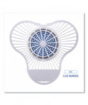 Boardwalk® Urinal Screen with Non-Para Deodorizer Block deodorizes, cleans, and prevents scale build-up within the urinal. Every flush of the urinal tints the water blue so the water is noticeably treated. The pleasant, scented block eliminates odors and helps to maintain drain lines by fighting bacteria growth. The flexible plastic screen traps debris to further protect the drain. Long-lasting, lasts up to 1,500 flushes.