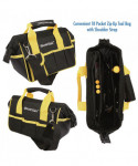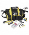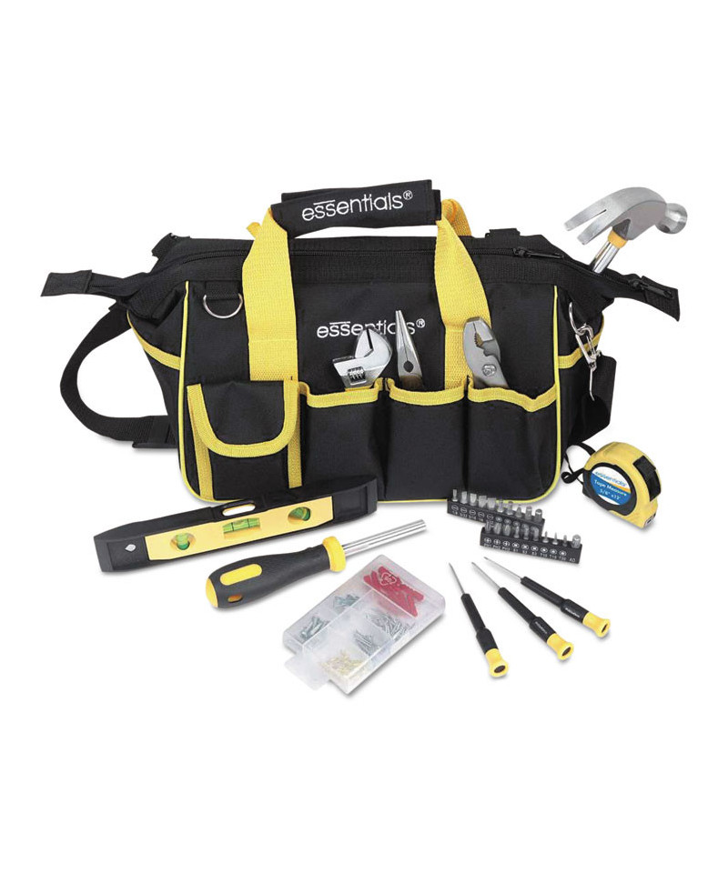 Everyone needs a loaded tool bag around the house. Whether your need calls for a hammer or a measuring tape, this Tool Set has it all! This bag is perfect for every at home need and DIY projects. Each tool features ergonomic comfort grip handles, and smaller grip diameters to reduce hand, wrist and arm fatigue. The kit also comes with an 18-pocket zip-up bag, featuring a shoulder strap for easy carrying. Includes: 6" long nose pliers, 6" slip joint pilers, 6" adjustable wrench, 12 oz. tubular steel nail hammer, 9" magnetic torpedo level, 12' x 5/8" tape measure, 3 precision screwdrivers (PHO, PHOO, 2.5 mm), magnetic bit driver, 19 insert bits in holders (including slotted, hex, Phillips, square and star) and 1/4" adapter fastener set.