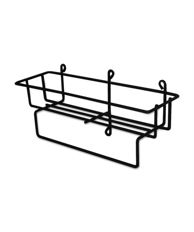 Sturdy, wall-mountable metal basket is ideal for placement in janitorial closets for easy, one-handed RTD cleaning-solution dispensing. Ideal for janitorial closets and team rooms.
