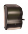 The Tork® Hand Towel Dispenser is an attractive dispenser that presents a clean, modern appearance that complements all décor. Translucent cover allows for "at a glance" inspection for refills. High impact plastic hides scratches and maintains image. The smooth cover with no recesses is easy to clean and maintain. High capacity for reduced costs and fewer service interruptions. Locking mechanism with key entry provides built-in pilferage control. High impact plastic and design help prevent breakage. Replaceable covers and lock fingers. No exposed metal parts to corrode or rust. Built to last.