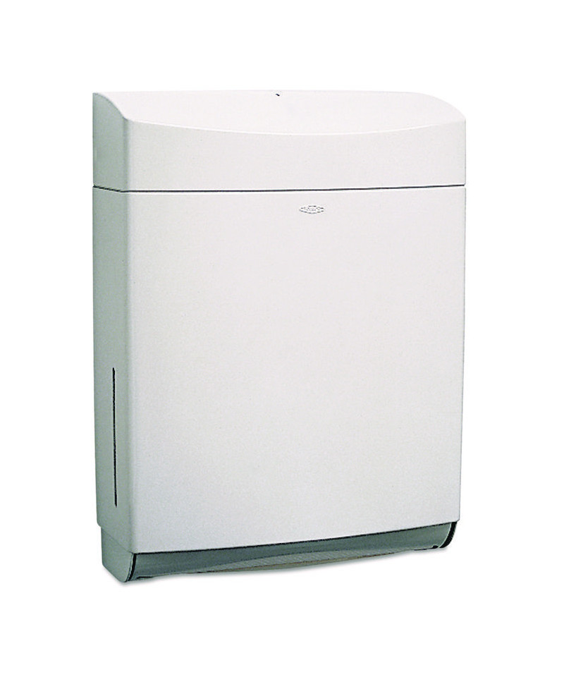 Dispenses C-fold or Multi-fold towels without adjustment or adapters. Cabinet slots indicate refill time. Door has concealed locking device to prevent tampering or theft. Made of durable ABS plastic for extended lifetime.