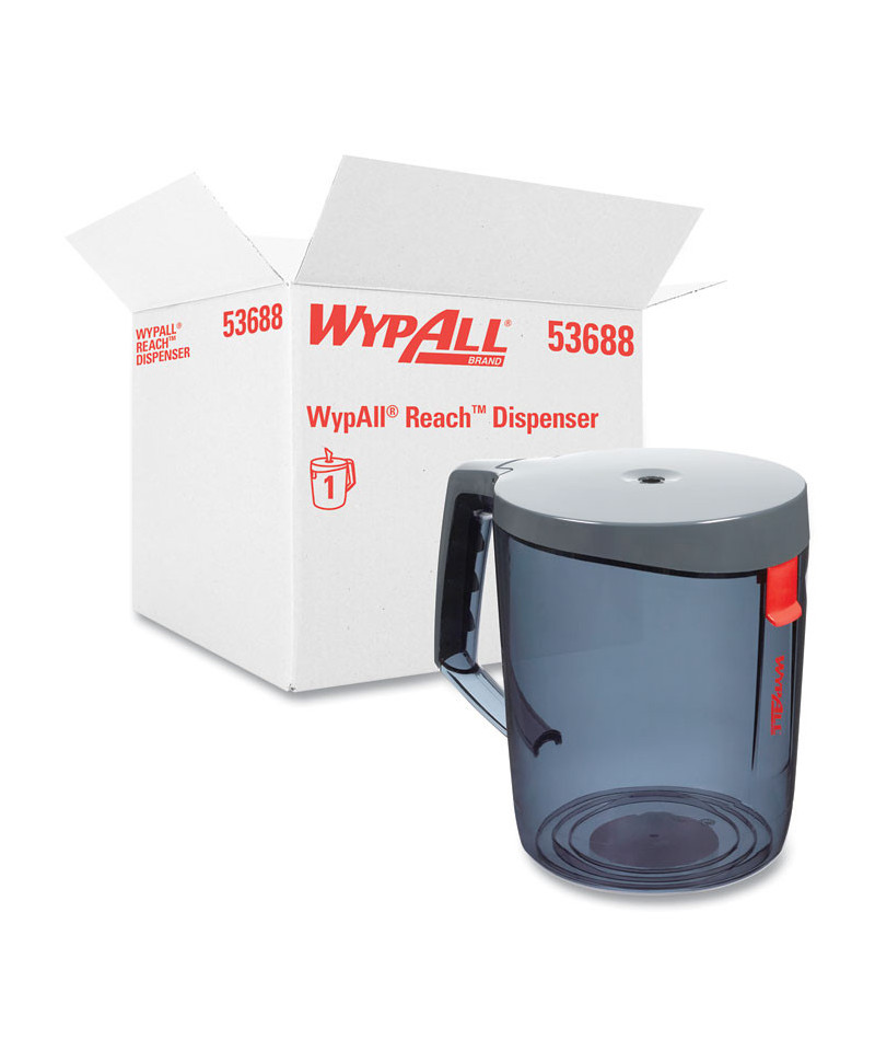 Trust the WypAll® Brand, the one that sets the standard for excellence. The new WypAll® Reach™ Towel System enables you to clean and disinfect safely and efficiently at a time when hygiene is paramount. It is convenient for on-the-go cleaning with a portable handheld dispenser that's perfect for frequently touched surfaces and light-duty tasks. It's a fully enclosed system that keeps the towels clean which helps to reduce the risk of cross contamination. The WypAll® Reach™ Towel System uses single sheet dispensing to help reduce waste—only touch the sheet you use. The dispenser is both portable and mountable. Using the included mounting bracket you can mount the dispenser either up or down to your preference. The innovative design of the dispenser will also compliment your workspace. The new WypAll® Reach™ Towel System keeps hygiene close at hand. Trust the WypAll® Brand to set the standard for excellence.