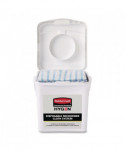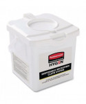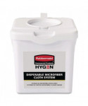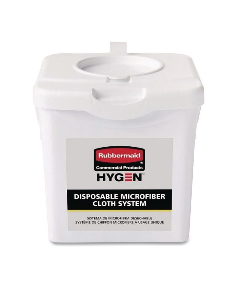 The HYGEN™ Disposable Microfiber Charging Bucket is designed to hold up to 60 HYGEN™ 12" x 12" Disposable Microfiber Cloths (sold separately) and a facility's preferred solution to create disposable pre-treated wipes with the microbe removal power of microfiber. Handle makes transport from one area to another easy. Labels provide clear instructions and a space for chemical label. Pull-through top allows for easy dispensing of cloths.