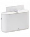 Stylish dispenser adds upscale yet hygienic touch to a business's restroom. Delivers only one folded towel at a time, minimizing risk of cross-contamination. Attractive, space-saving design is appealing and less wasteful than a stack of loose towels. Features smooth surface for optimum hygiene. Portable.