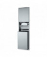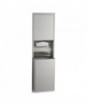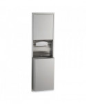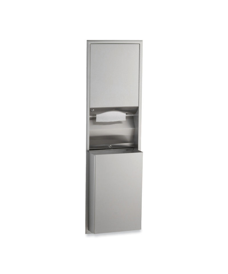 Unit includes convertible folded paper towel module and 12-gal waste receptacle. Satin finish stainless steel with seamless beveled flange. Dispenses 600 C-fold or 800 multifold towels. Removable waste receptacle locked into cabinet. Receptacle is 8? deep and extends 4.13? from wall. Rough Wall Opening: 16? w x 54.75" h x 4? minimum depth. Field conversion made easy without replacing existing cabinets in wall.