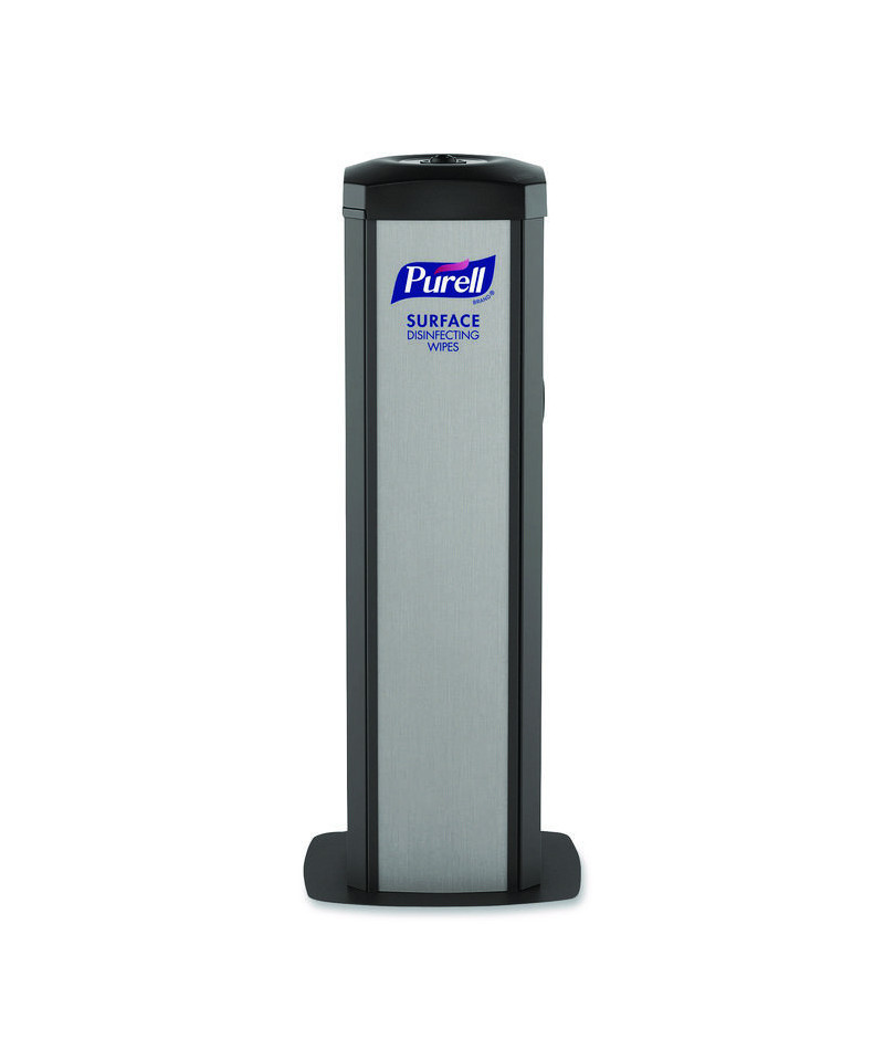 Make a great impression throughout your facility with the PURELL® DS360 High-Capacity Surface Disinfecting Wipes Station. This premium, high-capacity floor stand dispenses PURELL® Surface Multi-Purpose Disinfecting Wipes for quick access to surface hygiene. Designed with a REDIPUL™ Nozzle that virtually eliminates wipe fallback, the stand provides a readily accessible wipe every time. Plus, it features patented re-wicking technology that minimizes dried-out wipes. Place the durable steel frame dispenser nearly anywhere in your facility. The 360-degree design makes accessing wipes easy from any angle, and the freestanding unit features a weighted base that keeps it in place. It's been optimized to prevent rusting, and the integrated waste receptacle keeps the surrounding area clean. A built-in storage compartment allows you to store additional wipe refills.