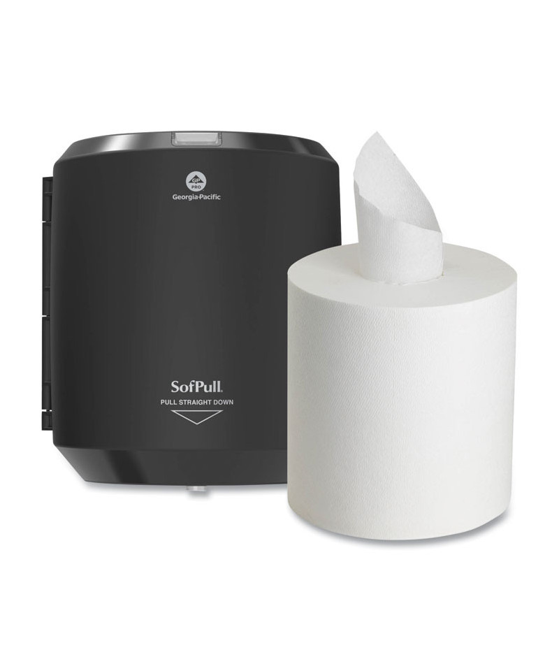 Sofpull® Centerpull paper towels are soft for thorough, gentle hand-drying, yet strong and absorbent for light cleanups. Because these towels are thick and high quality, employees and patrons tend to take fewer, helping to reduce waste. The dispenser's one-at-a time design helps reduce waste and, because contact with the dispenser is minimized, there is less risk of cross-contamination. The dispenser is easy to load a fresh roll with one hand, saving on maintenance time. Use these premium paper towel systems in restrooms, break rooms, waiting rooms, food preparation areas and more. GP PRO is a division of Georgia-Pacific Consumer Products. We deliver well-designed, durable and easy-to-maintain professional solutions to meet the hand-washing and cleaning needs for a range of business applications.