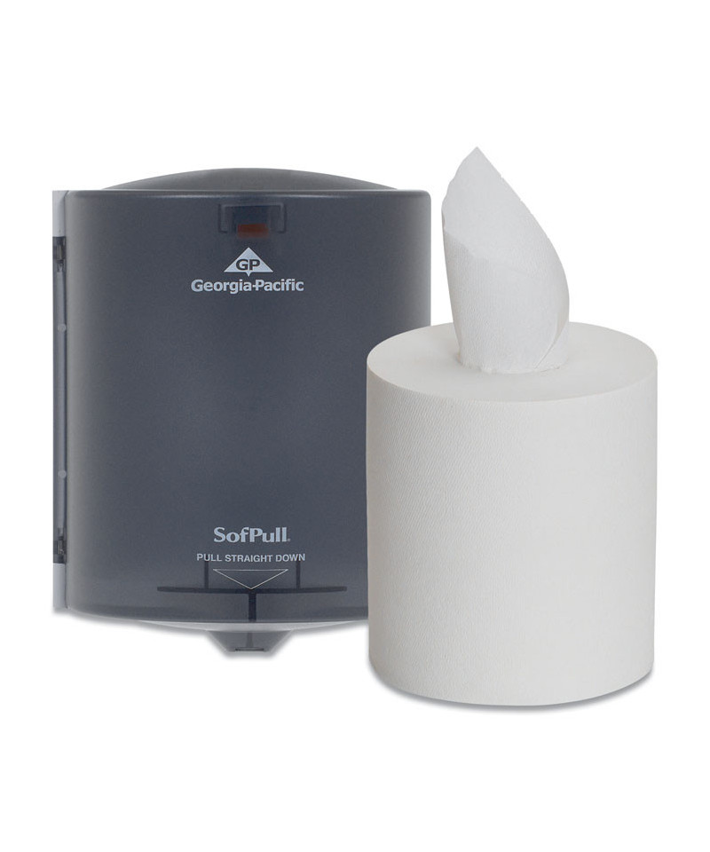 Sofpull® Centerpull paper towels are soft for thorough, gentle hand-drying, yet strong and absorbent for light cleanups. Because these towels are thick and high quality, employees and patrons tend to take fewer, helping to reduce waste. The dispenser's one-at-a time design helps reduce waste and, because contact with the dispenser is minimized, there is less risk of cross-contamination. The dispenser is easy to load a fresh roll with one hand, saving on maintenance time. Use these premium paper towel systems in restrooms, break rooms, waiting rooms, food preparation areas and more. GP PRO is a division of Georgia-Pacific Consumer Products. We deliver well-designed, durable and easy-to-maintain professional solutions to meet the hand-washing and cleaning needs for a range of business applications.