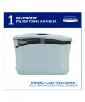 The Kimberly-Clark Professional™ Countertop Folded Paper Towel Dispenser offers your restroom guests an upgraded hand drying experience. Visitors take a hand towel without taking a step, so you can say goodbye to water splashes and sprays on floors and countertops. You'll say hello to a solution that elevates the cleanliness and image of your facility by dispensing superior Kleenex® Hand Towels – the most loved restroom brand in the US. This sleek countertop towel dispenser has a 15% higher capacity than competing systems, for fewer refills. This battery-free paper towel dispenser is compatible with select Kleenex® Brand and Scott® Brand folded paper towels (13253, 37490, 01880, 46321, 01960). When installed properly and when using the recommended product, this dispenser meets the ADA Standards for Accessible Design. If you're ready to improve cleanliness and revitalize the look of your restrooms, trust the Kimberly-Clark Professional™ Countertop Towel System.