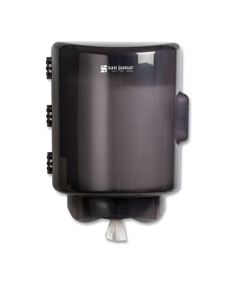 Economical, high-capacity towel dispenser provides easy access to towels. Touchless dispenser prevents cross-contamination and improves restroom hygiene. Easy-to-adjust funnel adjusts to accommodate all grades of centerpull paper, from single ply to industrial wipes. Impact-resistant plastic construction ensures a long-lasting, durable dispenser.