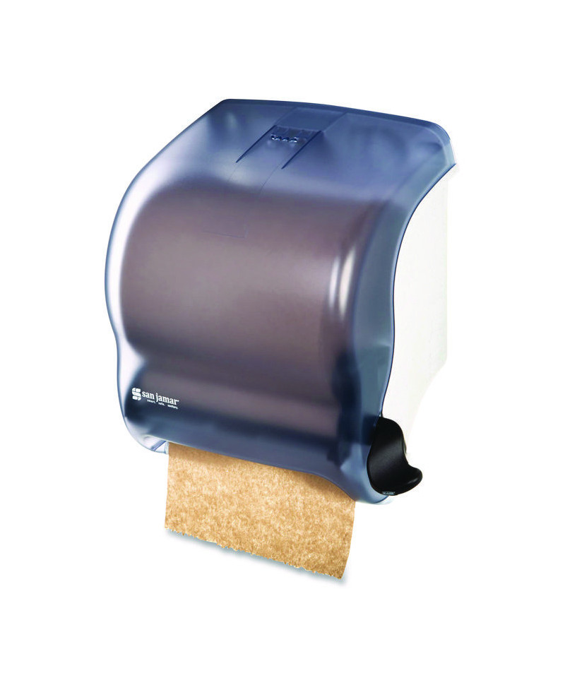 Stores a standard 800 ft, 8" roll towel reducing the need for frequent refills. Ergonomic lever – handle is easy to use and prevents towel waste. Simple construction with minimal internal parts for less maintenance. Attaches to most wall surfaces allowing quick access to towels in high-traffic areas. Accommodates all roll paper qualities with any core size including coreless and solid.