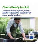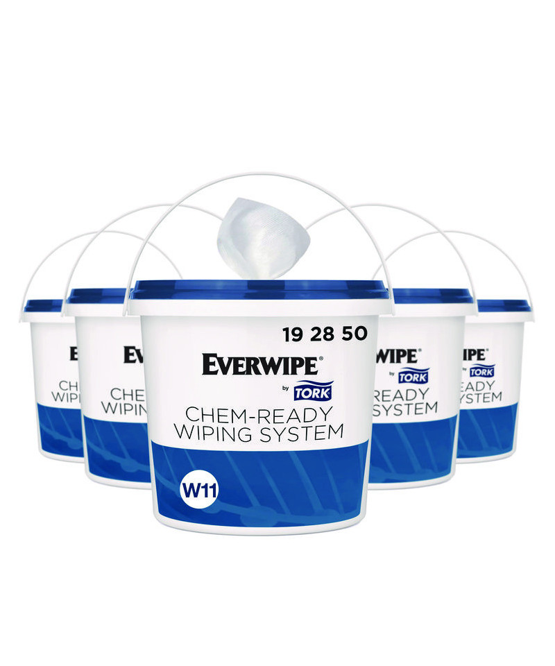 Make your own wet wipes with these Chem-Ready buckets. Simply place the roll of dry wipes into the compatible bucket and add your preferred water-based cleaning solution, sanitizer, or disinfectant cleaning chemical. The buckets are high capacity and portable, so staff can carry wipes wherever they are needed. Chem-Ready provides closed system cleaning that's more hygienic, safer and simpler than traditional open bucket or spray bottle systems. Plus, the resealable lid prevents spills and protects wipes from drying out. Compatible with Everwipe by Tork W11 refills.